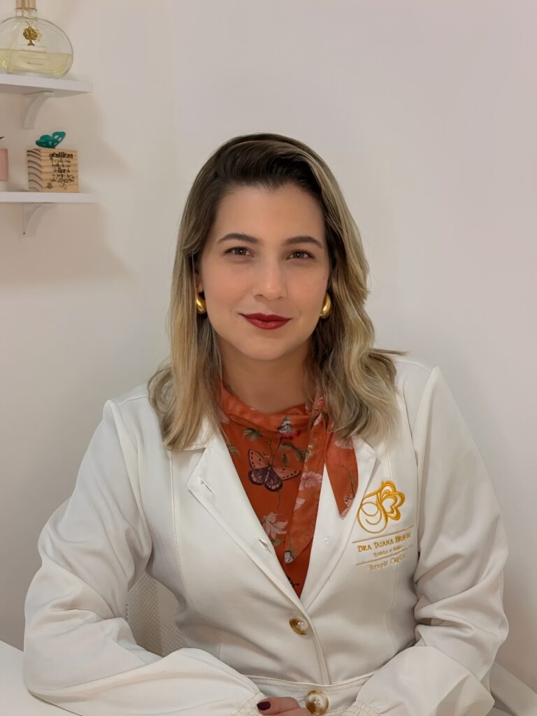 Olá, eu sou a Dra. Taiana Bravim, farmacêutica pós-graduada em Estética Avançada. Minha missão é unir ciência e sensibilidade para valorizar a sua beleza natural, resgatando autoestima, confiança e bem-estar.